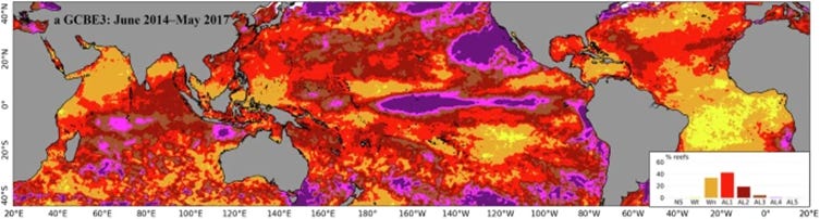 Figure 1. The bleaching catastrophe of 2014-17 which killed over a third of the worlds’ corals.