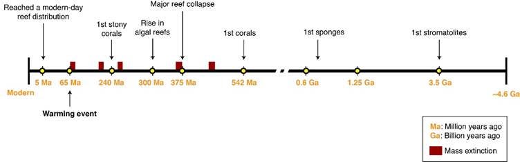 Figure 4. Corals have faced at least 5 major extinction crises driven by global warming in the past